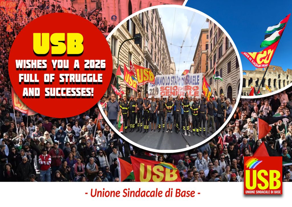 Uncategorized USB: for a 2026 of Class Struggle December 30, 2025 FacebookTwitterPinterestWhatsApp Unione Sindacale di Base USB wishes an happy new year to all comrades and workers, for a 2026 of class struggle and new victories.