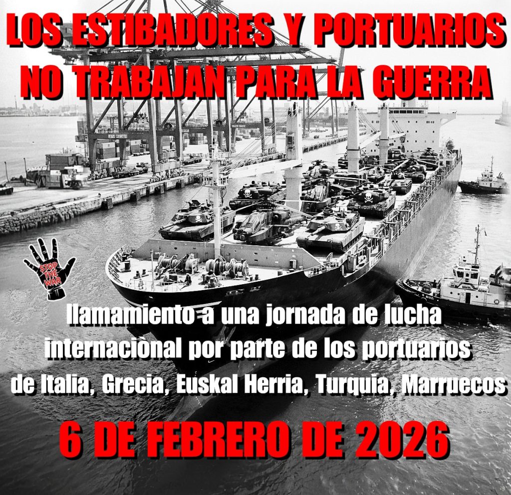 Compartiendo la determinación de rechazar cualquier complicidad de los trabajadores portuarios en el transporte de armas y material bélico, así como de expresar nuestra firme oposición a las consecuencias de la economía de guerra, los sindicatos lanzan un firme llamamiento para una Jornada Internacional de Acción y Lucha el 6 de febrero de 2026.