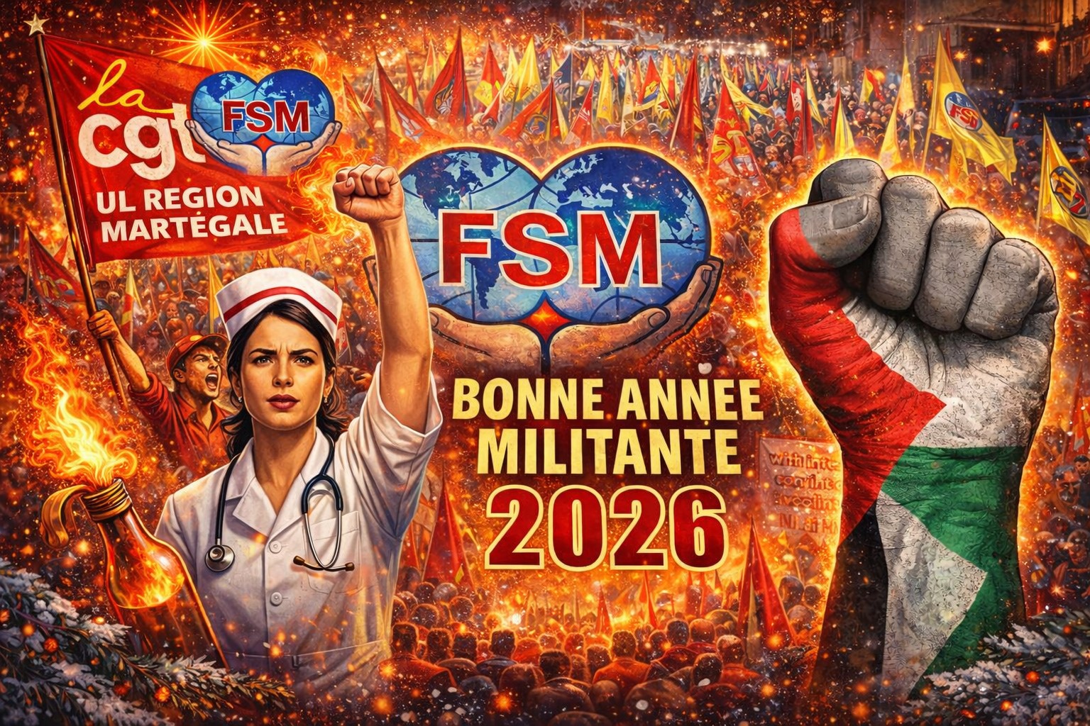 En entrant dans l’année 2026, l’Union Locale CGT de Martigues, fidèle au syndicalisme révolutionnaire, de classe et de transformation sociale, et dans l’esprit internationaliste de la Fédération syndicale mondiale, adresse ses vœux combatifs à toutes les travailleuses et tous les travailleurs, aux privé·es d’emploi, aux retraité·es, aux jeunes et à l’ensemble des militant·es syndicaux.