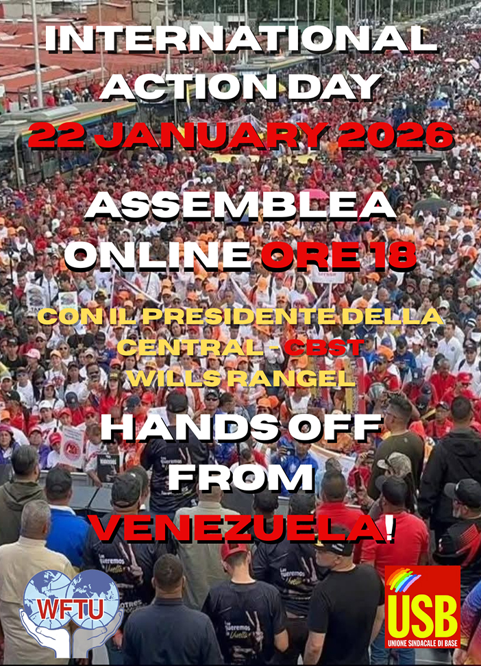 Il giorno 22 gennaio si terrà online l’assemblea con il presidente della CBST Wills Ranger, in occasione dell’International Action Day per il Venezuela. Giù le mani dal Venezuela!