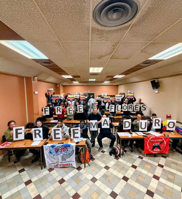 Our Paris sanitation workers union CGT FTDNEEA sends from its executive comission its most fraternal salutes to the Bolivarian people of Venezuela in defense of its sovereignty against the imperialist agression led by the US and the kidnapping of Nicolás Maduro Moros and Cilia Flores.