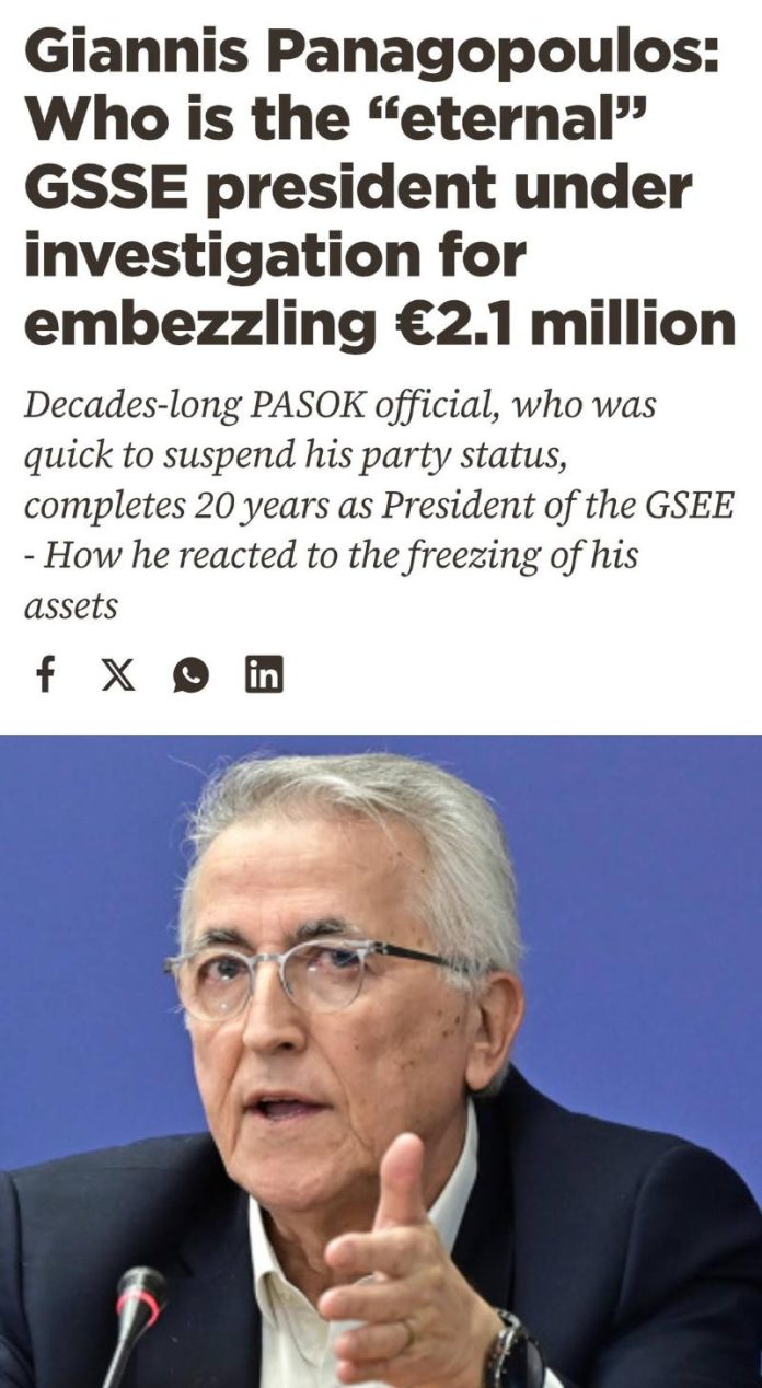 Giannis Panagopoulos, a Greek trade unionist and long-standing president of the Greek Confederation of Labour – GSEE, has been accused of embezzling €2 million intended for training. A further €70 million is under investigation at the INE GSEE (Greek trade union research institute) during his presidency, where it ended up in the hands of unknown companies.