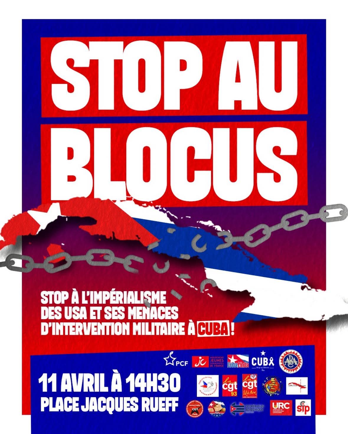 Le blocus imperialiste des Etats-Unis plonge le peuple de Cuba dans une crise humanitaire sans précédent. Partout tout le temps manifestons notre solidarité a ce peuple et son gouvernement qui résiste depuis plus de 60 ans à l’oppression.