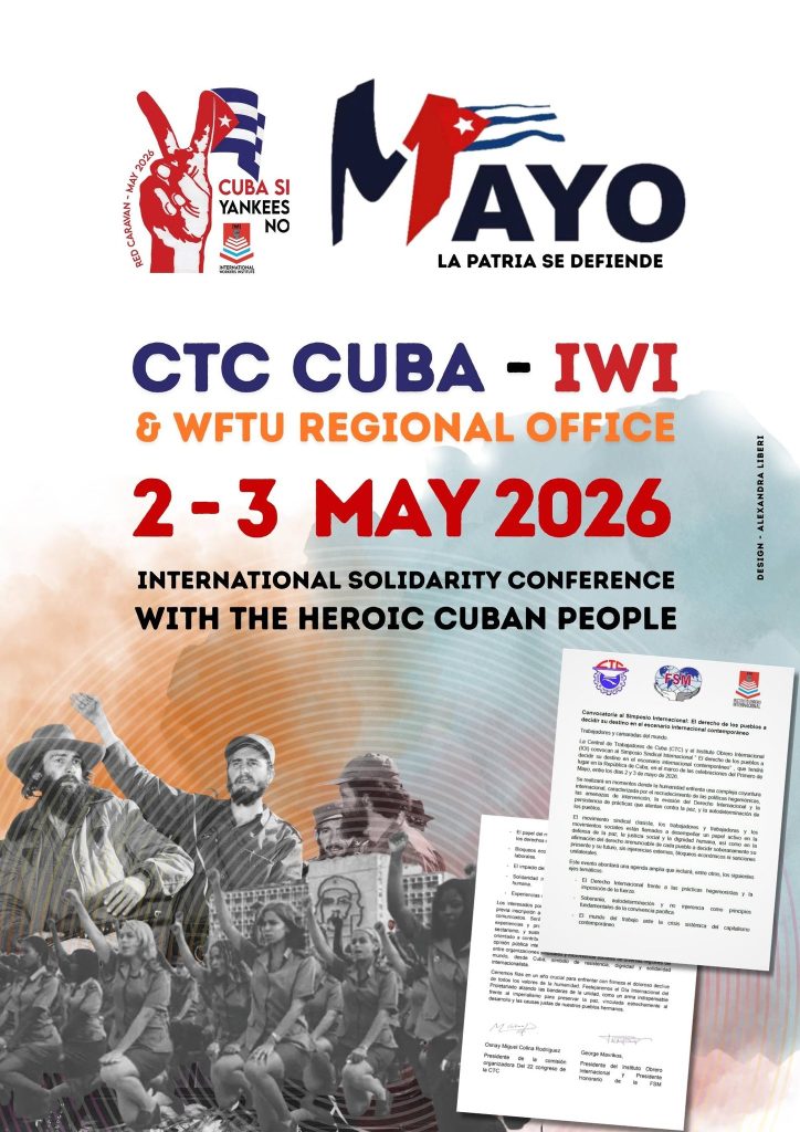 The CTC of Cuba together with the International Workers Institute and the WFTU Regional Office will be organizing an International Solidarity Conference in Cuba on 2-3 May 2026.