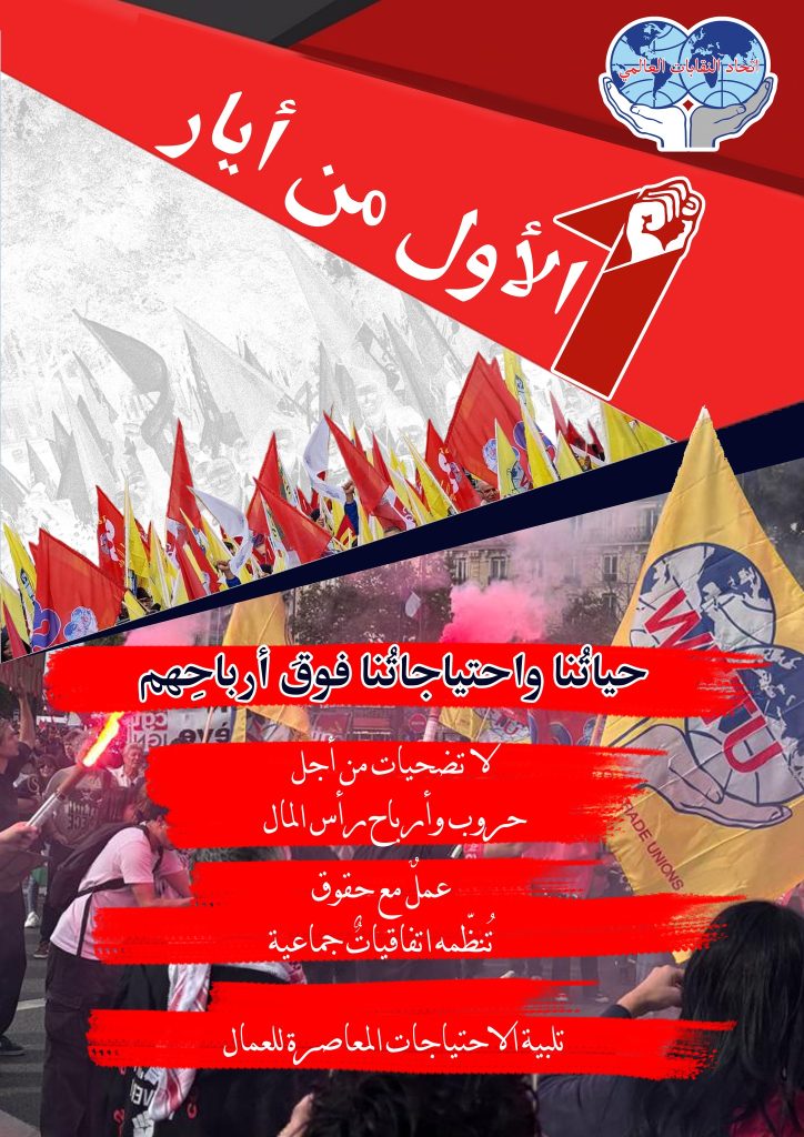 The WFTU calls on trade unions to reject compromise and submission. To strengthen their struggles and organize resistance in every workplace, every sector, and every country, against the barbarity of the system of profit and war.