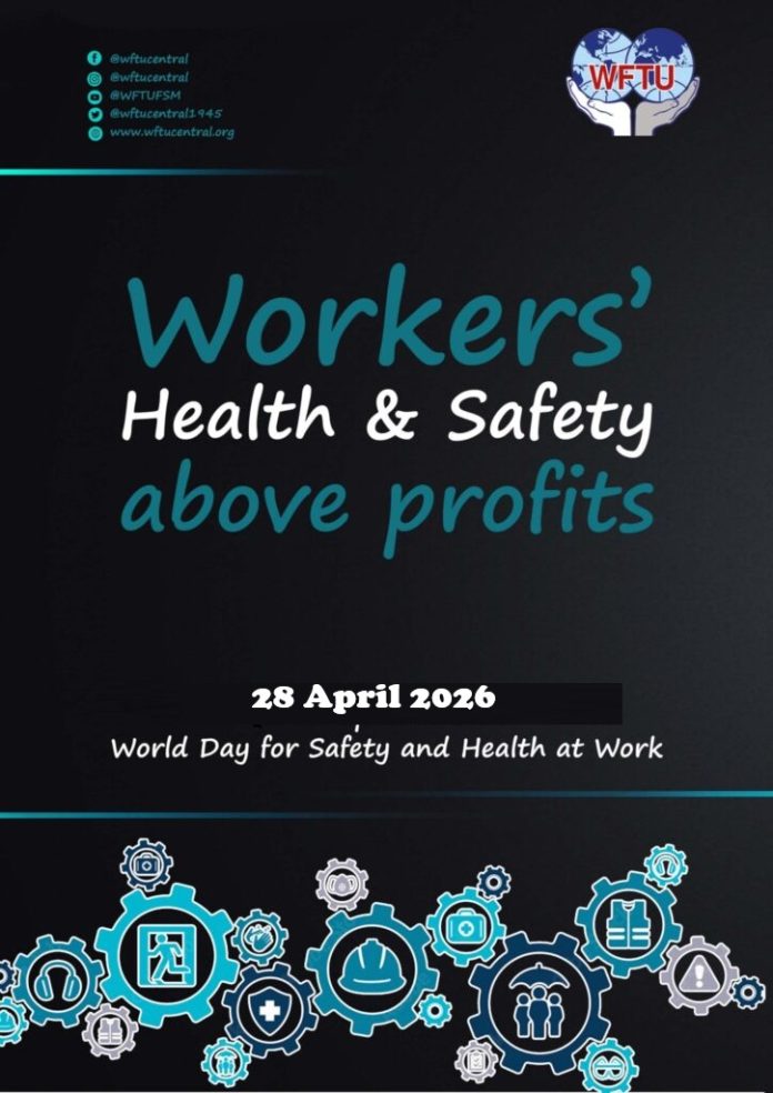 The World Federation of Trade Unions, the militant voice of more than 105 million workers across the globe, reaffirms its commitment to the struggle for safe and healthy working conditions on the occasion of the World Day for Safety and Health at Work.